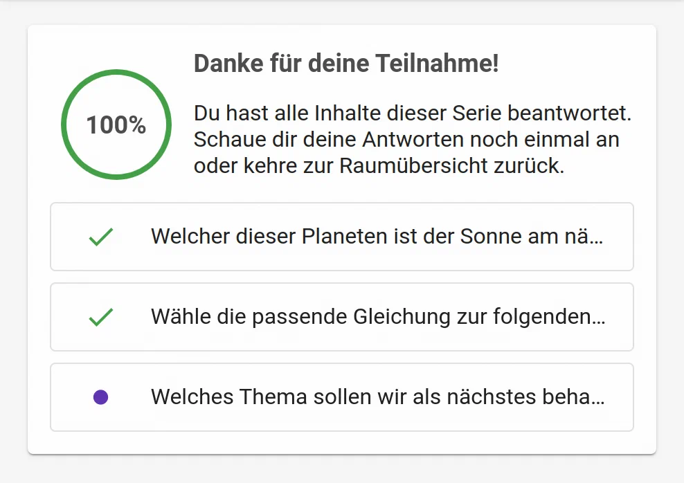 Fragenserien-Übersicht für Teilnehmende