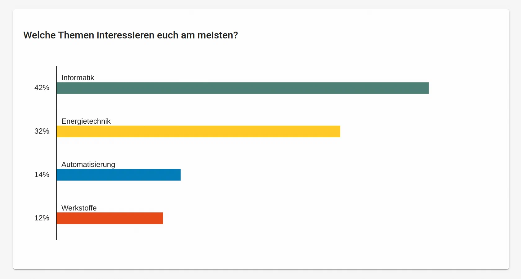 Mit dem neuen Frageformat Priorisierung können die Teilnehmenden den verschiedenen Antwortoptionen insgesamt 100 Punkte zuweisen. Die Ergebnisse werden in einem horizontalen Balkendiagramm visualisiert und nach absteigender Punkteverteilung sortiert.