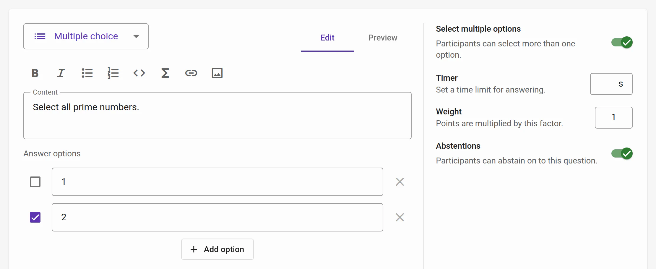 For a better overview, the settings for content are now displayed in a separate column on larger screens. Adding/editing/removing answer options has been optimized.Tile view for word clouds